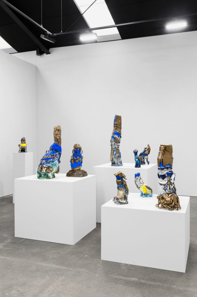 Through his tactile ceramic sculptures, Dolatian presents vivid representations of sculptural deities, architectural forms and vessels inspired by Mesopotamian myths and architectural sites. However, rather than replicating history, his intention is to render it anew, creating fictionalised deities with eccentric forms and colour schemes.