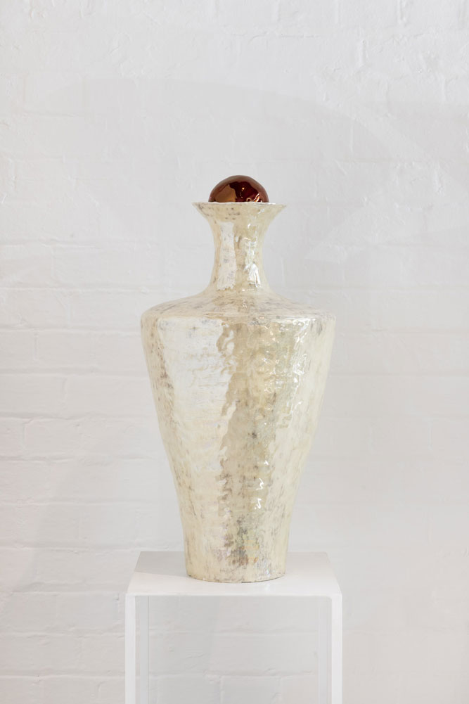 Hand build terracotta, Majolica glaze, 24 karat gold lustre