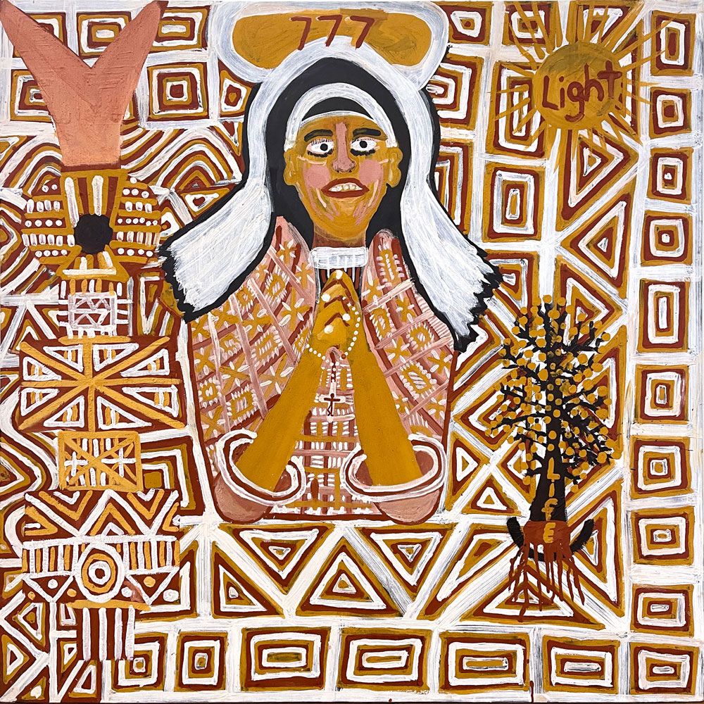 JOHNATHON WORLD PEACE BUSH Mother Teresa (Peace), 2025 locally sourced earth pigments 120 x 120 cm $15,000
